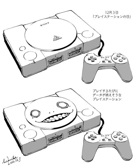 【12/3プレイステーションの日】 今日がそうなのね~初代プレステ持ってないけどデザインがとても素敵♪ ラクガキしたらとんでもない機能を持ったプレステが誕生しちゃいましたわ… #プレイステーションの日