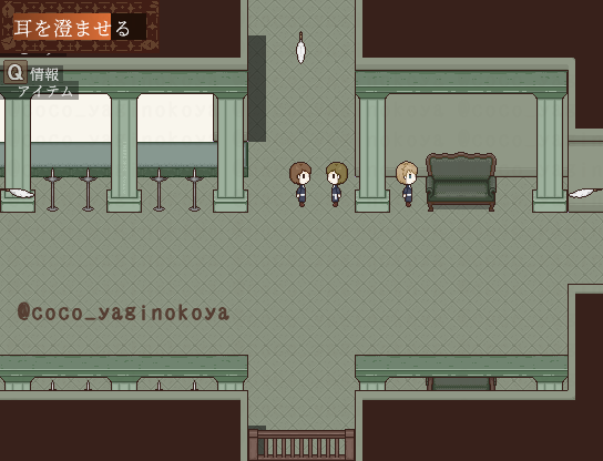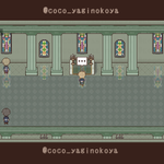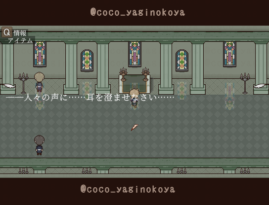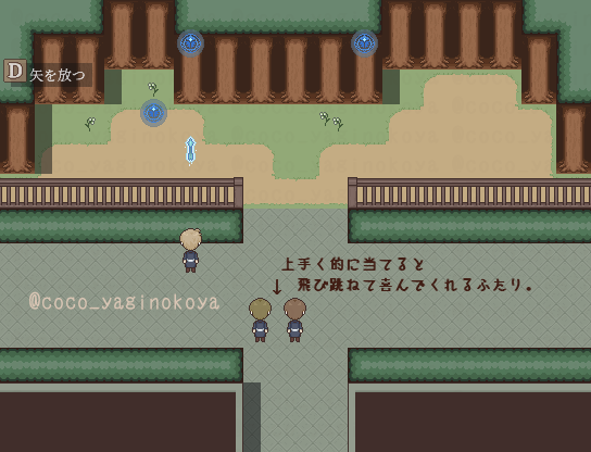 「止まり木を発つ駒鳥へ」 制作中のミステリーホラー風な探索ADVゲームです。 画像は天の声(ヒント機能)と 寄り道で遊べるミニゲーム(的当て)のシーンから。 #ドット絵 #プレミアムツクールデー