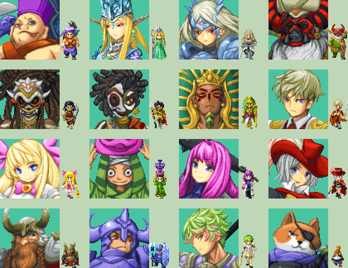 #プレミアムツクールデー #ドット絵 #RPGツクールMV 長らく制作を続けていた『三頭身RPG』も無事完結しましたので、三頭身グラフィックをさらに制作しています。 今月作ったのはこんな感じ……めっちゃ作ってるな!! もうすぐコンプリートするので、通常のホコグラとまとめてzipであげるよ!
