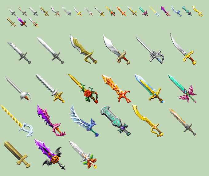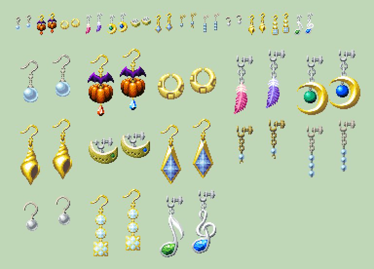 #プレミアムツクールデー オープンワールドRPG「 #エレマスタ 」作成中 登場武器防具は3000種を予定しており、あなたの収集癖を満たすこと間違いないです! 最近はキャラグラフィックやアイテム作成が多めです #pixelart #ドット絵 #RPGツクールMZ