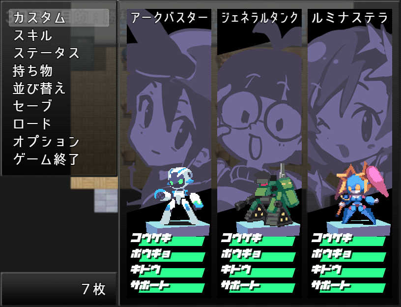 MVで作り中のホビアニRPG『プラモギア』 大体のデータとか仮画像とかできてきたので、多分もうちょっとしたら知り合いとかにテストプレイしてもらえそうレベル…🫠 ロゴのデザインが難しすぎて一生決まらん🥶 #プレミアムツクールデー