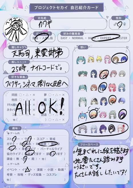 何気に初めてな履歴書〜 プロセカ好きさんも絵描きさんとも繋がりたいです🫶 お友達欲しい(切実) 反応してくれた人お迎えするかも #プロセカ履歴書 #プロセカ自己紹介カード #絵描きさんと繋がりたい