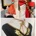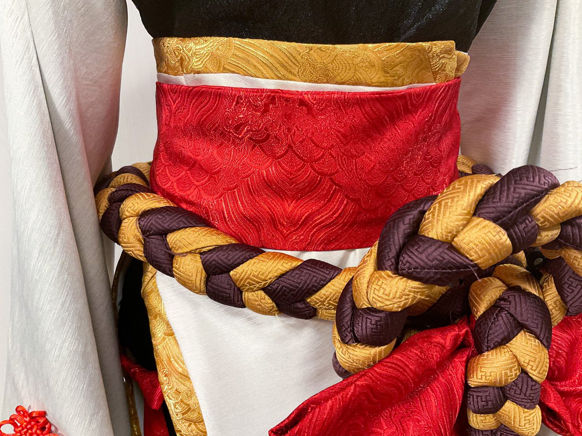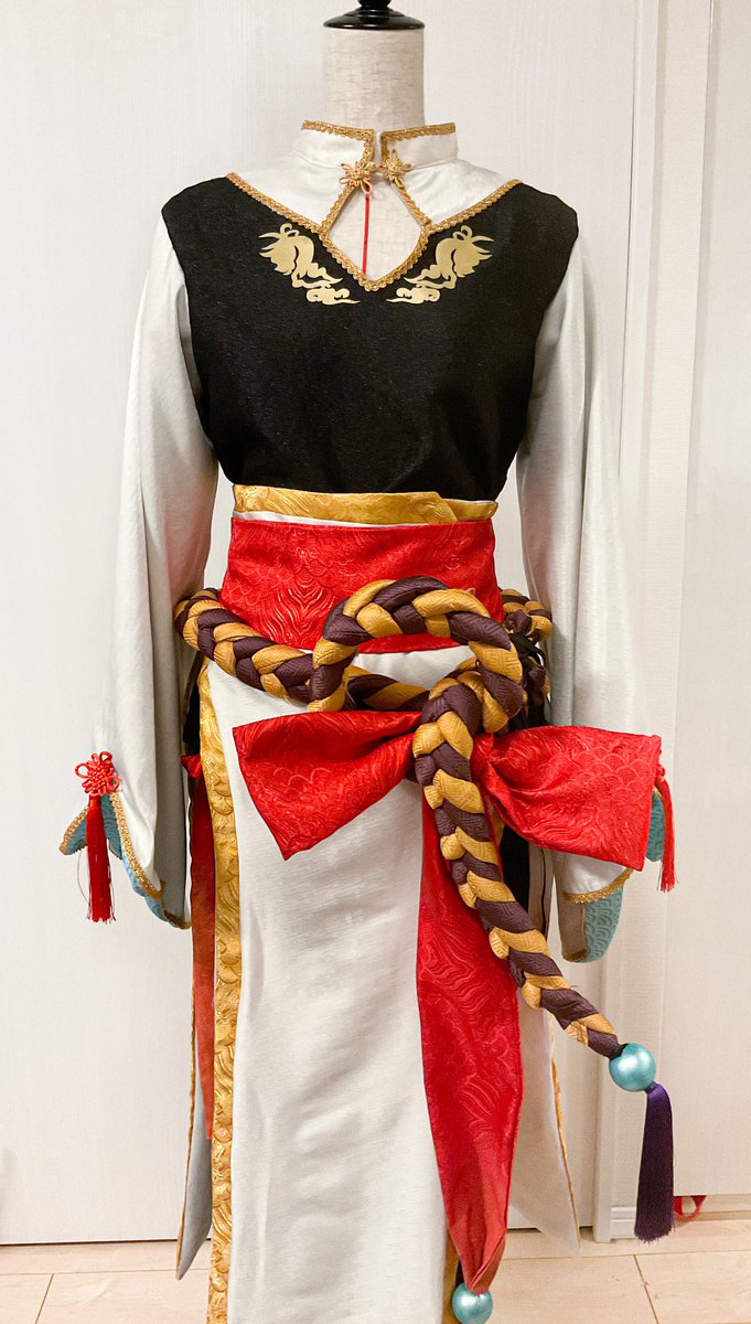 ★2道中も大切な過程 東雲彰人 うっすらきらめく可愛い中華衣装に仕上がりました! 中華風味を強めにしたくて、赤と金のフチの生地は模様強め。気持ちは★4!w ちなみに、一番大変だったのは紐です笑笑 #プロセカ衣装部 #りりかるルナさんの衣装製作 #prsk_cos