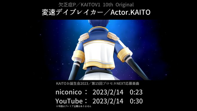 【新曲告知】 近日投稿の新曲についてのお知らせです🍨 よろしくお願いいたします!🙏 === 変速デイブレイカー/Actor.KAITO niconico: 2/14 0:23 YouTube: 2/17 0:30 #KAITOお誕生会2023 参加動画 第15回 #プロセカNEXT 応募楽曲
