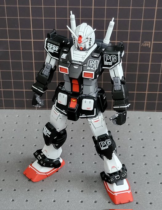 #プロトタイプガンダム [ 脚部完成 ] アンクルガードにラインデカールを入れたかったのですがディテールか多いためスリッパに。珍しい位置ですが公式デザインのMSV-R/陸戦型FAガンダムにて前例有り。バーニア付きアンクルガードはインテグラル版をデジタル造形しました。 #ガンプラ