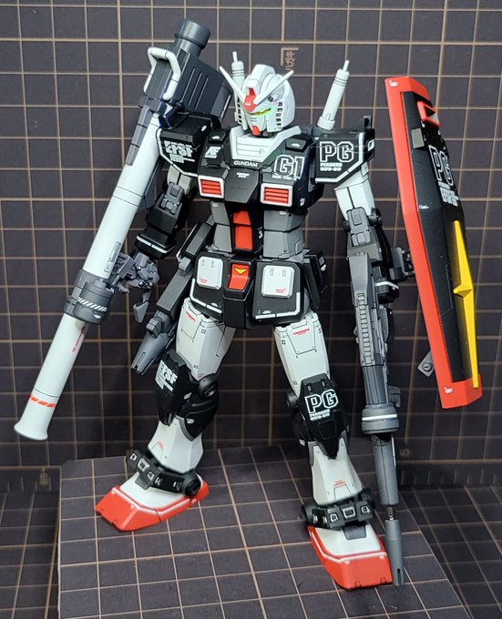 #プロトタイプガンダム [ ハイパーバズーカ完成 ] 見どころはセンサー部の後端にディテール追加とラインデカールくらい。現時点でのフル装備は予備武装のビームスプレーガンがポイント🙋 #ガンプラ