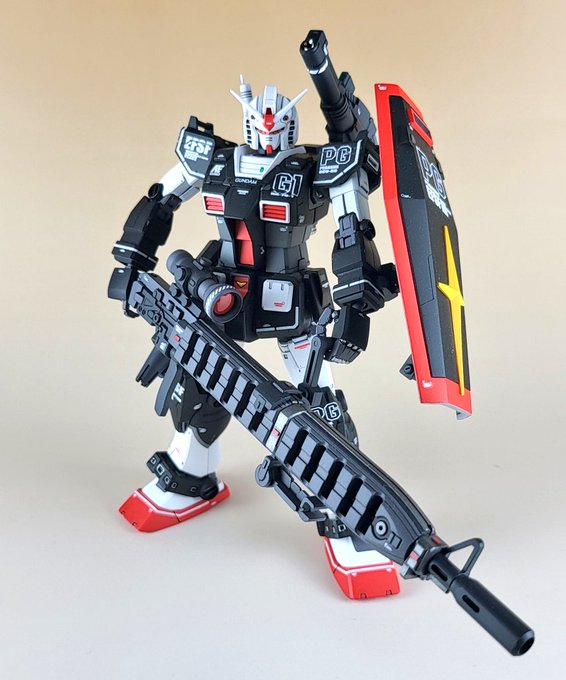 #プロトタイプガンダム [ ホルスター懸架形態&ビームライフル完成 ] ホルスターは差し替えです。 ビームスプレーガンは後期試作型なので新型ビーム発振部のデカールを派手目にしてます。 ビームライフルのポイントは後端部をカトキ版に形状変更。だいぶらしくなるのでオススメです。 #ガンプラ