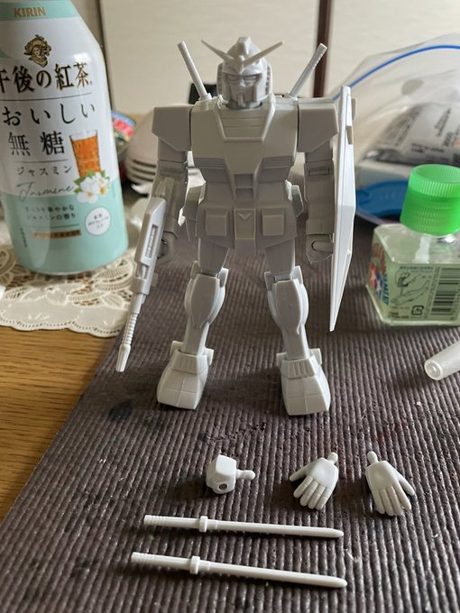 取り敢えずプロトタイプガンダム仮組み完了。バリとかパーツの合わないとか穴が歪んでるとか色々あったけどここまで来れたので一安心。コレで早ければ明日マーカー塗装かな。#ガンプラの画像を貼るとRTされると聞いて #プロトタイプガンダム #旧キット