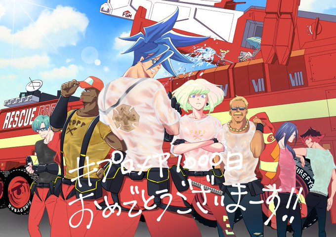 #プロメア1000日 プロメアのおかげで自粛自粛の窮屈な日々も妄想で忙しく楽しく健狂的に生活できております!ありがとうございます!!最近では新しい扉も開けてしまいました。今後も応炎し続けます。1000日おめでとうございます!!🎊
