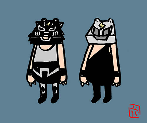 ケロードウォリアーズ。ケロックバンベーダー。ケロートサスケ。 #ロードウォリアーズ #ビックバンベーダー #グレートサスケ #プロレスラー #かえるヒーローズ #蛙 #ファンアート #fanart