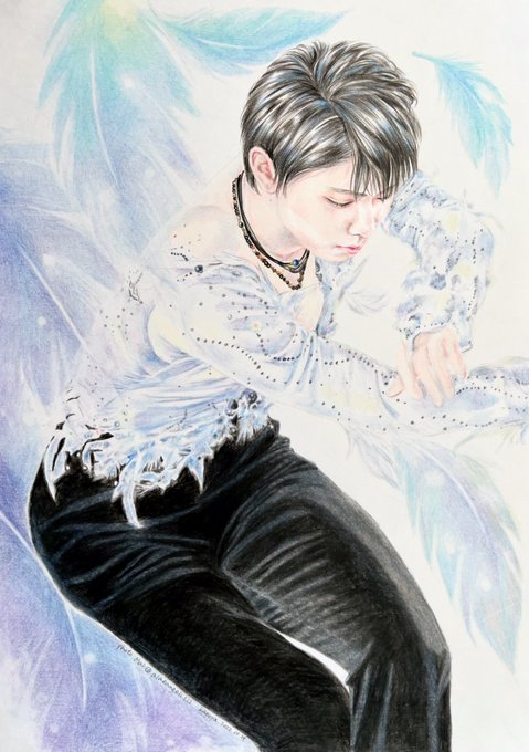 プロローグのプロローグはもう既に始まってる雰囲気TLですが明日からいよいよ❣️ #プロローグ の大成功を祈って🙏🙏🙏✍️✨ #YuzuruHanyu𓃵 #YuzuruHanyu #HANYUYUZURU #羽生結弦 #鉛筆画 #色鉛筆画 蜷川実花さんのお写真を鉛筆と目だけ色鉛筆で描かせて頂きました🙇🏻♀️