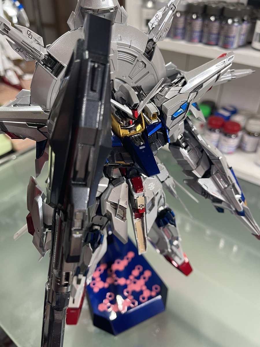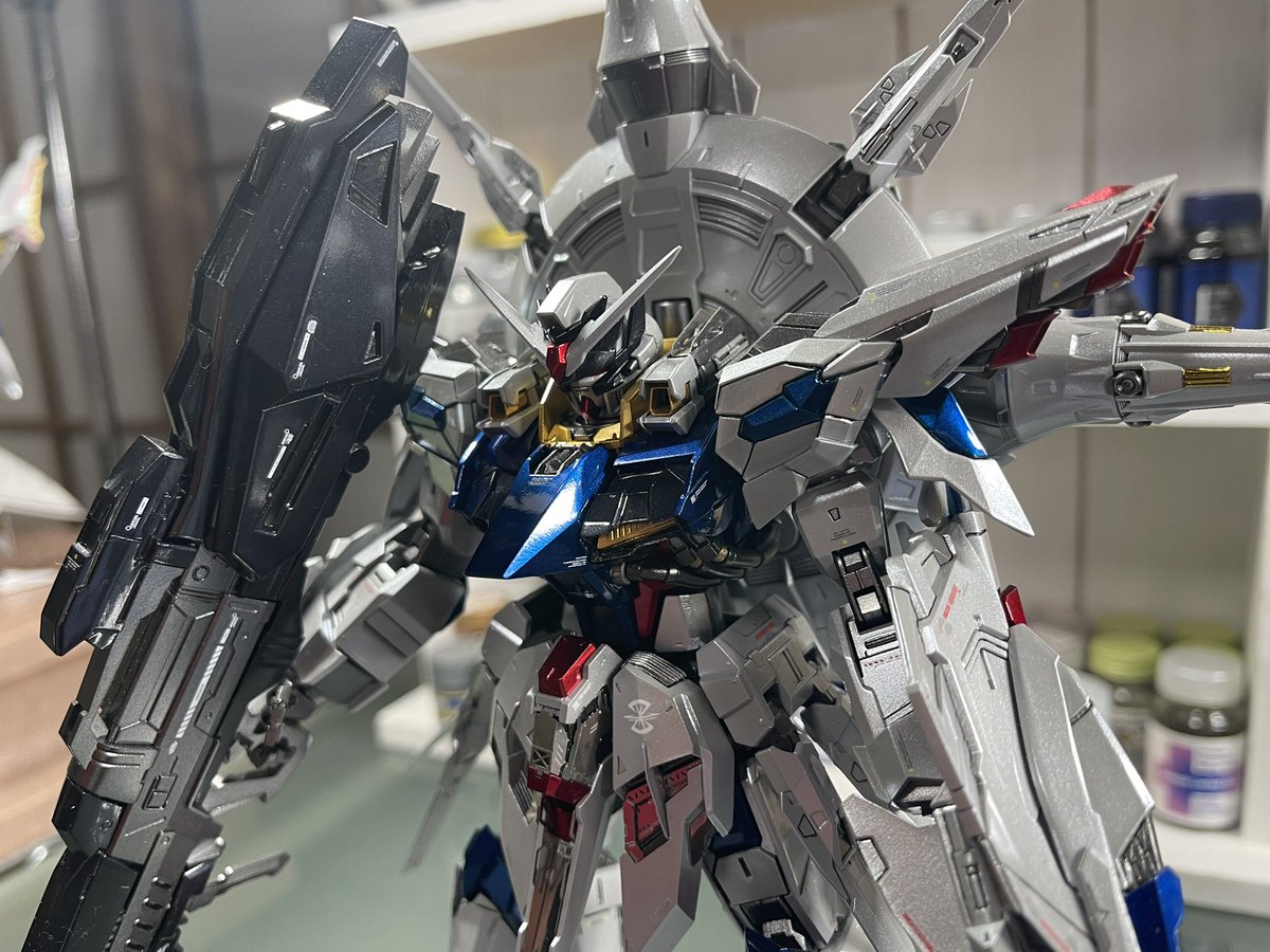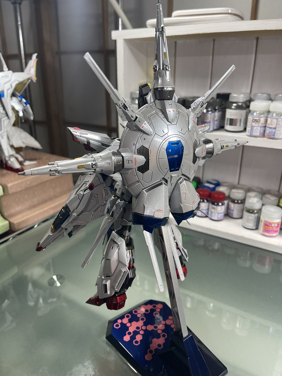 プロヴィデンスガンダム完成! 今回はミスターメタリックカラーのアイスシルバーでメタリック&所々をキャンディ塗装に カッコええ!! #ガンプラ #ガンプラの画像貼るとRTされると聞いて #プロヴィデンスガンダム
