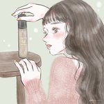 【仕事しました】 La sana ラサーナ ヘアエッセンス。 店頭用のPOPイラスト4種。 その3「しっとり」。 服装は「あまり甘くなりすぎない様に」という指示が入りました。 #イラスト #イラストレーター #イラストレーション #illust #illustration #女性イラスト #ヘアケア #fashionillust