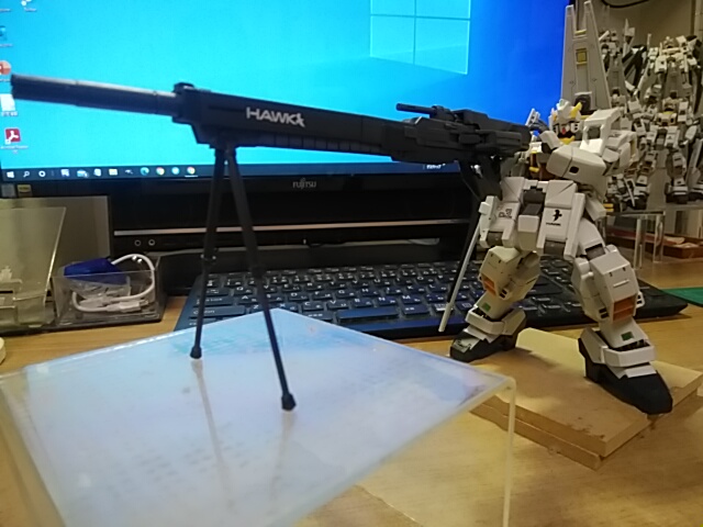 うちのアウスラに、ハイパー・メガ・ランチャー(ロングライプ)を、構えさせてみた。さすがに腕のリーチ差で、両手持ちが出来ず、バイポットで。 #ガンプラ好きと繋がりたい #ガンプラの画像貼るとRTされると聞いて #ヘイズルアウスラ #プリムローズ #ハイパー・メガ・ランチャー