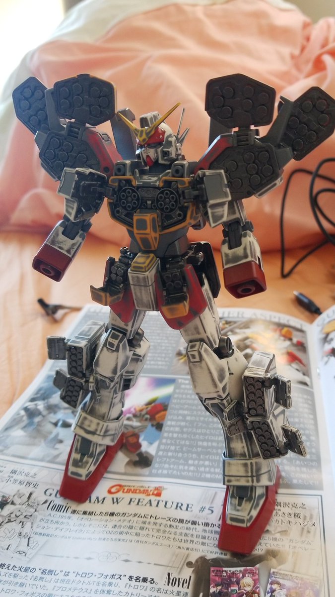おはようございます! HGAC ガンダムヘビーアームズ完成! 今回はプラ棒を所々に貼ってみましたけど…加工処理が大変… 後は首が奥に詰まっていたのプラバンで上げています。 次はサンドロックを作りますよ~! #ガンプラ #ガンプラ好きと繋がりたい #ヘビーアームズ
