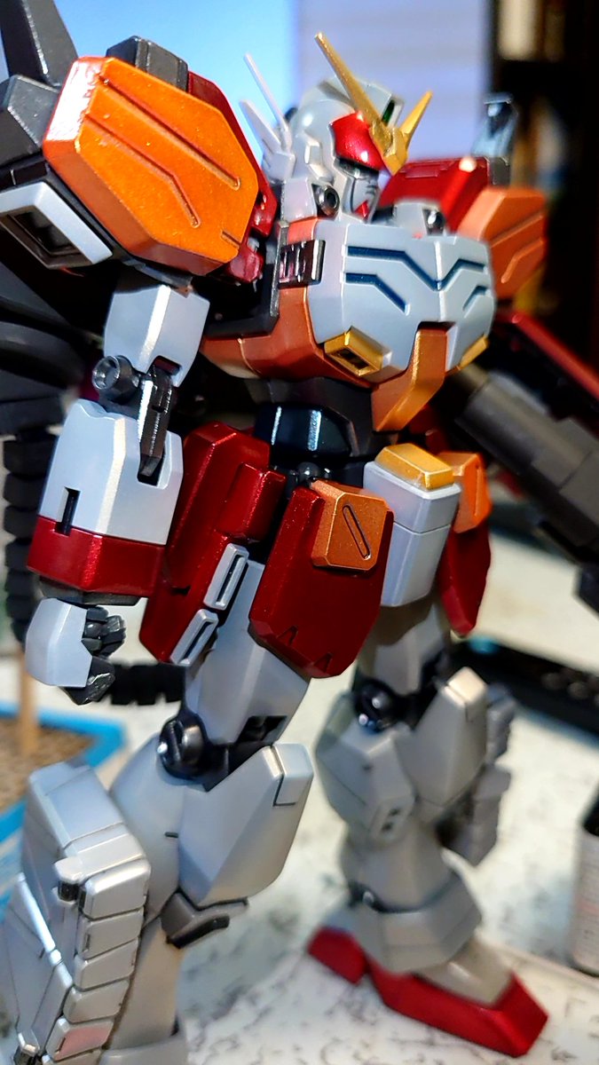 ようやく全塗装できた✨ キャンディ塗装ですがあまり曲面がないので目立たないかな💦 昨日今日いっぱい使って塗装してたからようやく解放感٩( ᐖ )۶ しかし、喜べん……今日は飲むか……(´;ω;`) #ガンプラ #ガンプラの画像貼るとRTされると聞いて #ヘビーアームズ #ガンプラ好きな人と繋がりたい