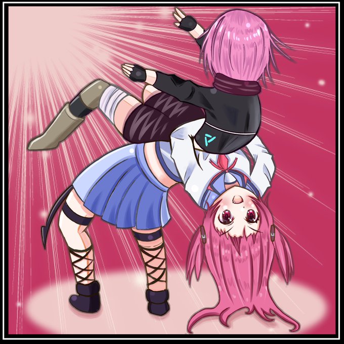 ABコラボ最高だったので、コラボ第二弾妄想絵を描きました。 セラフ基地内上映映画第二弾としてチロルの超人的受け身技術を生かしたプロレス映画が企画された。しかし肝心のプロレス技をかけることができる者がいない。そこに謎のプロレス好き少女ユイが迷い込んできて… #ヘブバンAngelBeatsコラボ