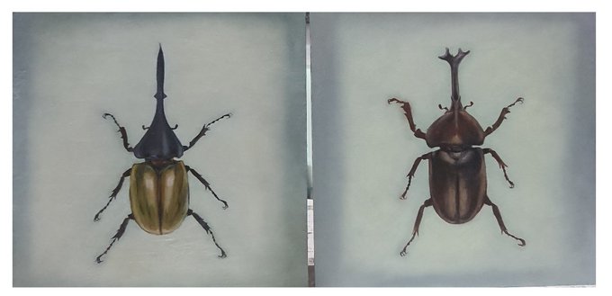 昆虫は初の試み〜‼︎ あれだけ苦手だった虫も、子供等との虫取り&飼育のおかげで免疫少しつきました🙌 #wip #アイコン #イラスト #絵描きさんと繋がりたい #ヘラクレスオオカブト #オオクワガタ