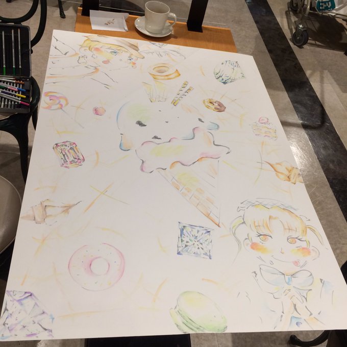 イオン尼崎店のフードコートより🍀 #グリム童話 #ヘンゼルとグレーテル #絵描きさんと繋がりたい #途中経過 #ジェラート屋さんの展示物作品 展示物を見たい方は フードコートのお店回って探して下さいね🍀 B1サイズ🎨