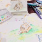 おはようございます☀ #イオン尼崎店 のフードコートより🍀 #ヘンゼルとグレーテル の絵の続きを描きに来ています🍀 夕方辺りまではいますので 御用の方はこちら訪ねてくださいね🍀 #日々成長するアート #水彩画 #絵描きさんと繋がりたい