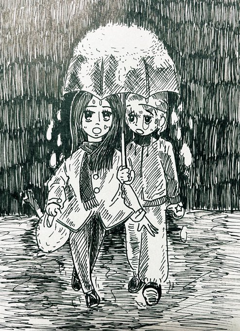 雪の日の買い物帰りの まひろとちさと 霙になってぬかるんでいる #ベイビーわるきゅーれ #イラスト #イラスト好きと繋がりたい #イラスト好きさんと繋がりたい #イラスト好きな人と繋がりたい #絵描きさんと繫がりたい #ベビ絵 #雪が降ってきた #drawing #illustration #doodle #ペン画