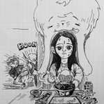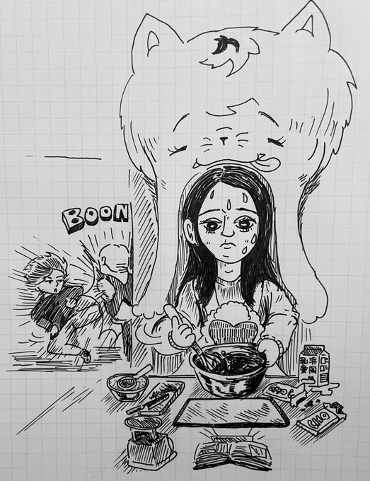 バレンタイン乗り遅れた… ケーキのお返しに チョコを手作りするちさと。 何かいるけど。 #ベイビーわるきゅーれ #ベビ絵 #イラスト #アナログイラスト #ペン画 #髙石あかり #イラスト好きな人と繋がりたい #絵描きさんと繫がりたい #深夜の真剣お絵描き60分一本勝負 #イラスト好きと繋がりたい