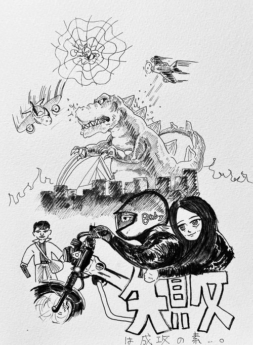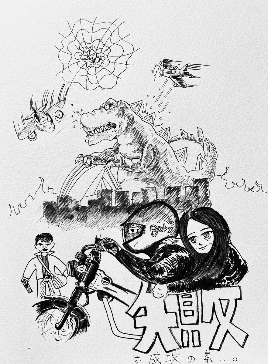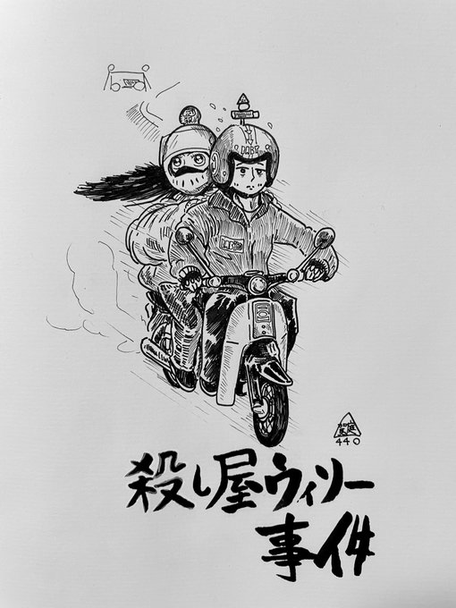 殺し屋ウィリー事件 あぁ〜 ようやく描けたよ。 #ベイビーわるきゅーれ #水曜どうでしょう #だるま屋ウィリー事件 #あのヒゲ殺していいよね #イラスト #アナログイラスト #ペン画 #スーパーカブ #illustraion #drawing #pen