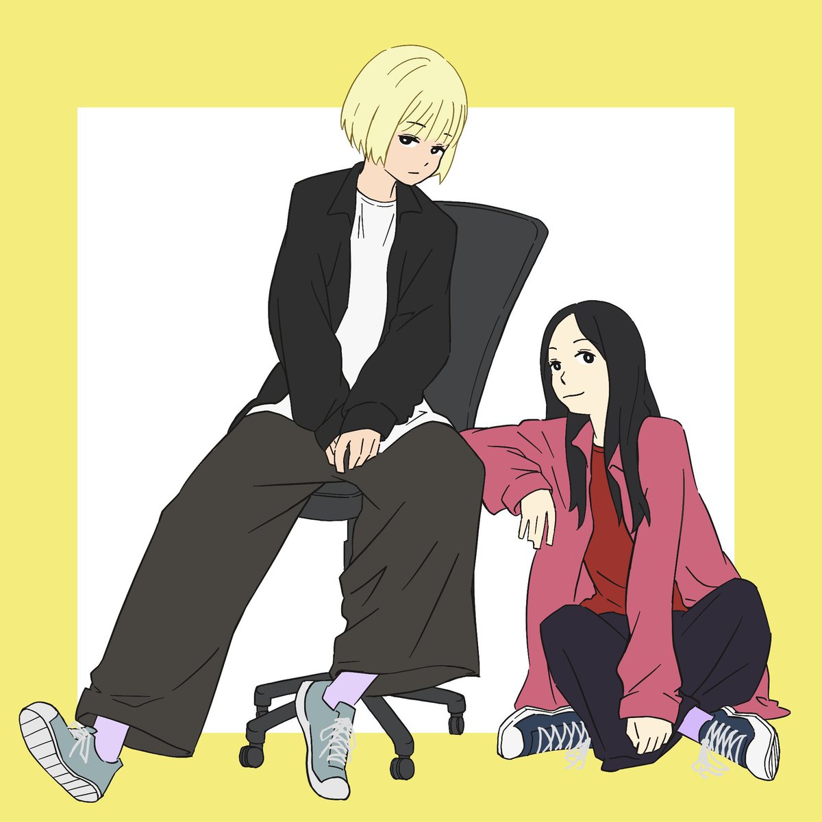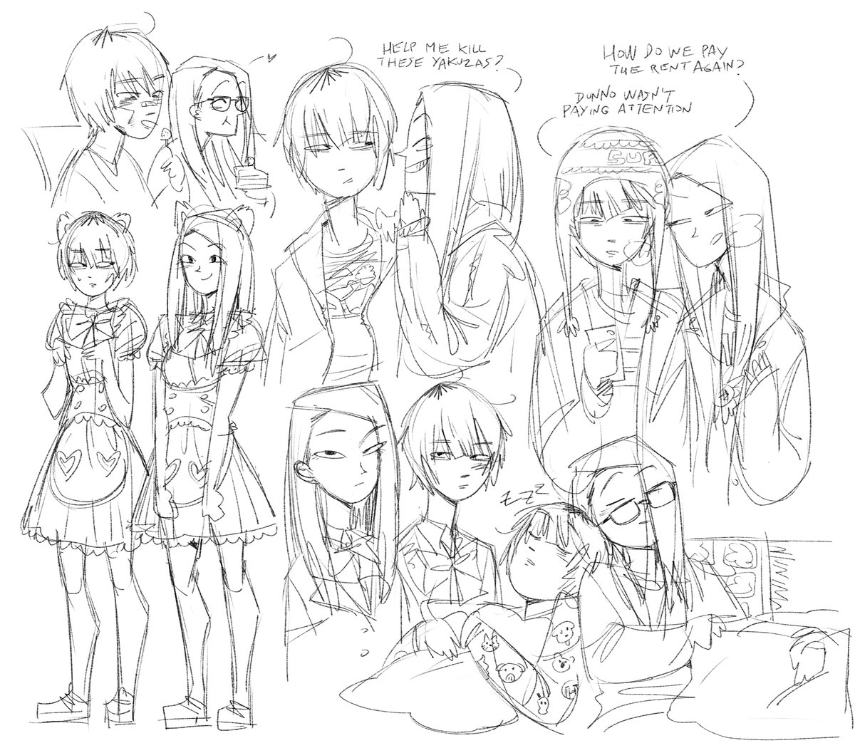ベイビーわるきゅーれ参考 アクションも、ゆるいシーンも大好きな映画。2人の絡みが最高🎞 色塗るの苦手…いっそ線画のみにしてしまおうかな。 #イラスト #ベイビーわるきゅーれ #絵描きさんと繫がりたい