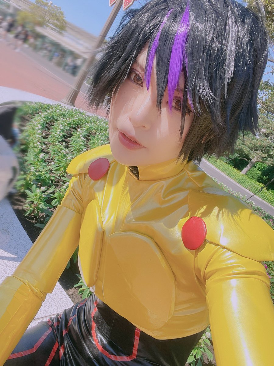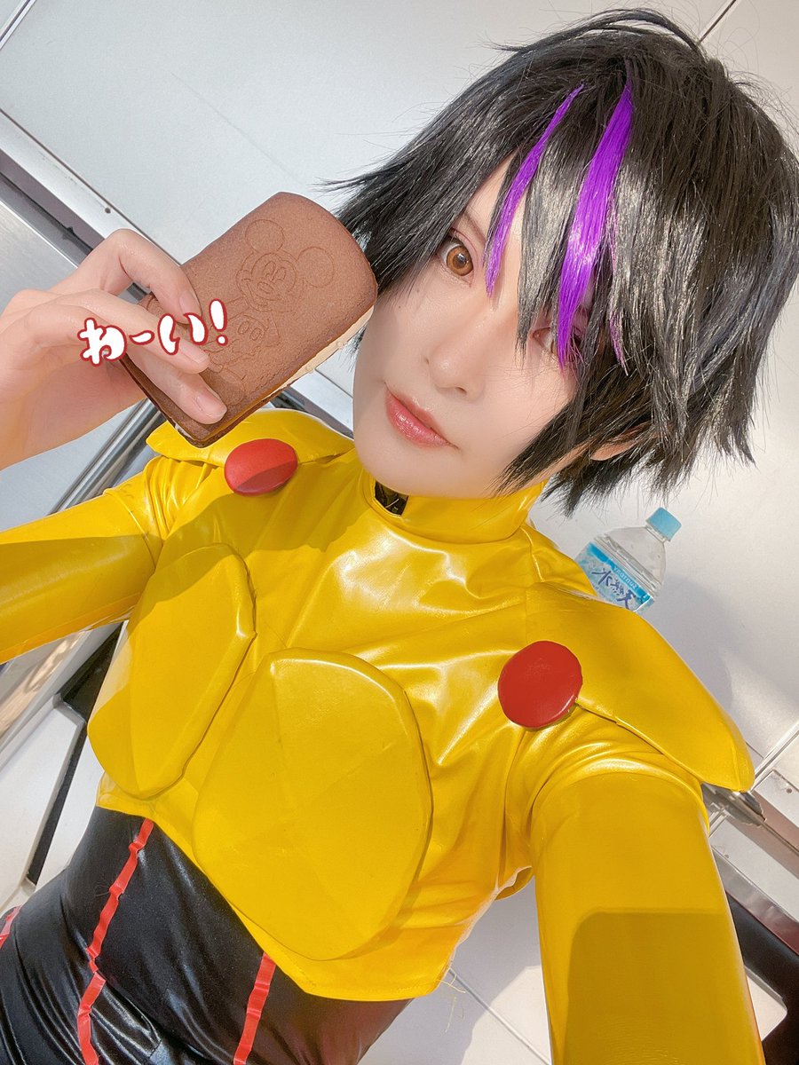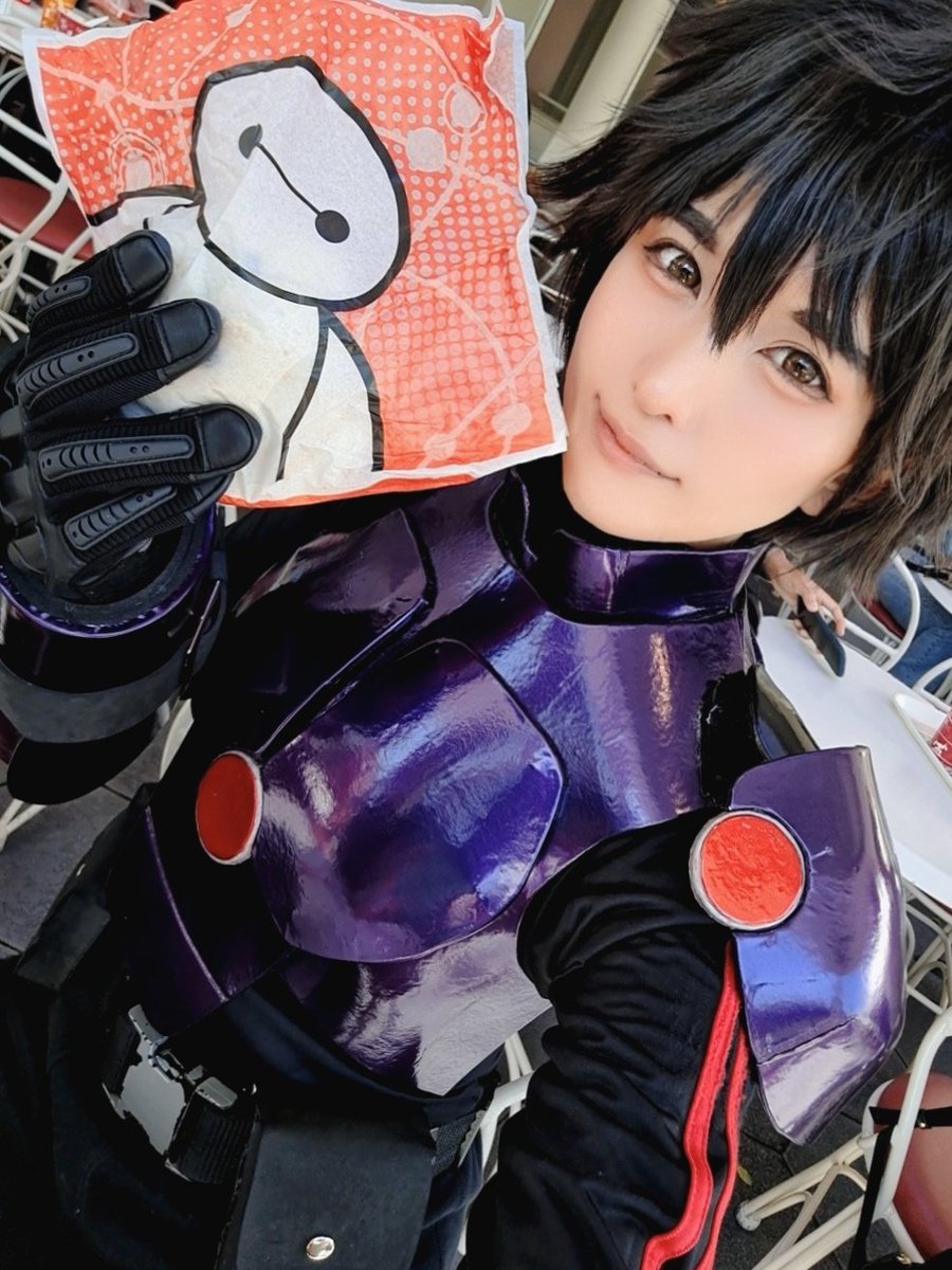 ころちゃんワサビが横撮りしてくれたゴーゴー ティラミスクッキーアイスがうれしいゴーゴー フレッドのスーツと自撮りするゴーゴー 朝みんなと合流するの待ってた時に撮った最近の男装続きに自撮りが迷子なゴーゴー #Dハロ2022 #Dハロ仮装2022 #ベイマックス