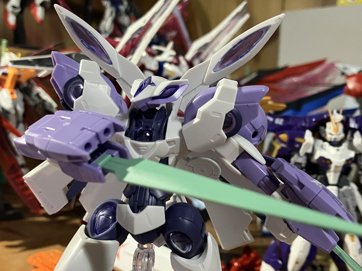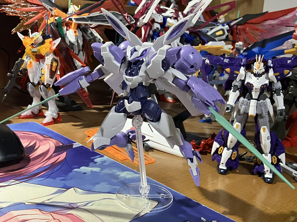 HGベギルベウ完成しました〜! ロービジなんですが、偏光塗料を使ってアクセントをつけています。スジボリなどのディテールアップはちょい控えめなんですが、できるだけ手が入っている感じを目指して頑張りました! #ベギルベウ #水星の魔女 #ガンプラ好きな人と繋がりたい