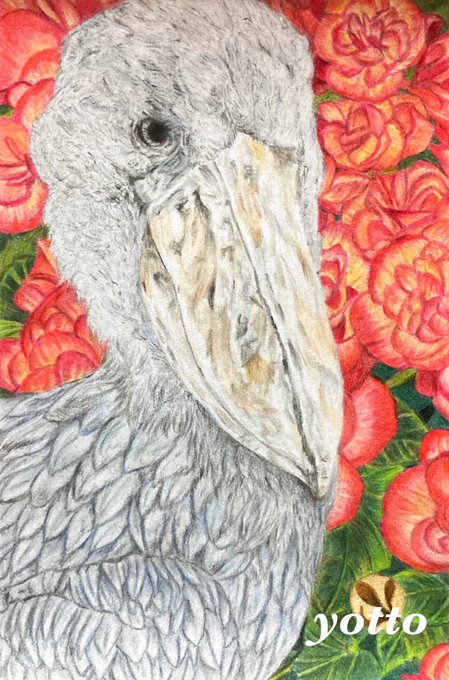 色鉛筆画「 ハシビロコウ&リ-ガ-スベゴニア 」 #色鉛筆 #色鉛筆画 #絵画 #絵 #ハシビロコウ #ベゴニア #pencilart #colorpencil 【 ポストカードサイズ 】 完成しました。 ご覧頂き有難うございます。 - yotto -