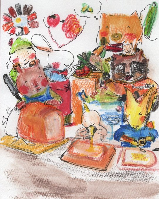 「ジャムサンドもいいよね」😀♥ イラスト by Hikaru 🐰 ~ブログ「絵とおはなしのくに」★ベジタボーがやってきた!🥒 kappa:なんか、メンバー、増えてない?(笑) yumiito67.wordpress.com/2022/11/24/%e3… つづきます🙇 #イラスト #絵とおはなしのくに #うさの世界 #ベジタボーがやってきた