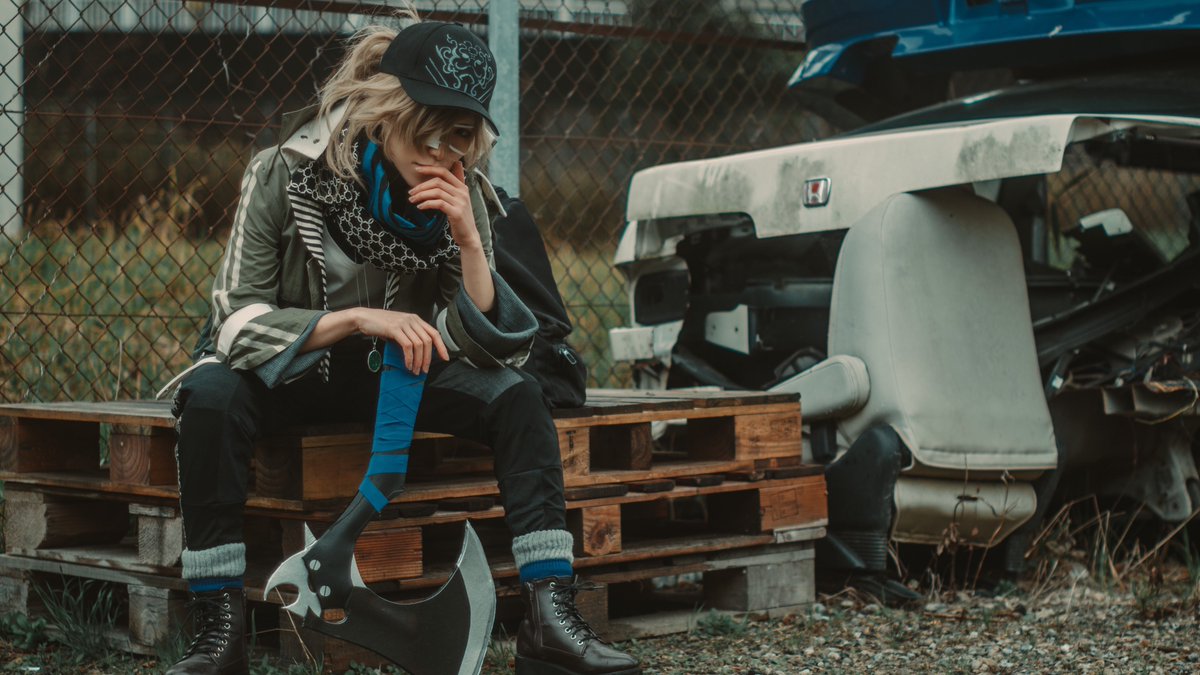 Cos/アークナイツ/ガヴィル(戦医コーデ) - -ブロンドガラスの割れ方とかワイルドな1枚🐊🐊🐊車に載って撮影できたの楽しかったです😀(ベ〇ツ) 📸▶ユケオさん( @ukeo88 Studio▶ベスコス神戸さん( @bescoskobe #Arknights #明日方舟 #ベスコス神戸