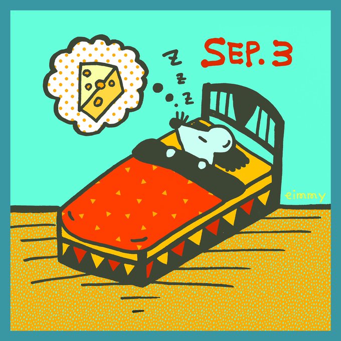 #1日1絵 #9月3日 の過去の絵。 #今日は何の日 #ドラえもんの誕生日 1枚目 昨年の「リスの夢」。 3枚目 #ベッドの日 。 4枚目「にじいろ市」だった年も。 #リス #シマリス #イラスト #illustration #illustrator