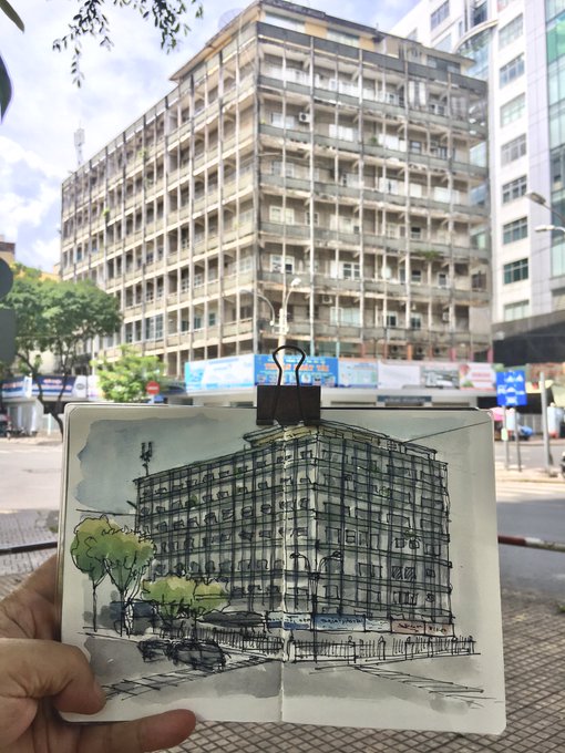 ホーチミン市の都心にありながら、ずっと建て替えの噂が絶えないTruong Dinh通りのビル。前々から気になっていたのでスケッチした。5年後もこのまま残っているのだろうか? なぜか外でスケッチをすると腹が減るのでこれから丸亀へ。 #ベトナム #水彩 #urbansketch #Watercolor