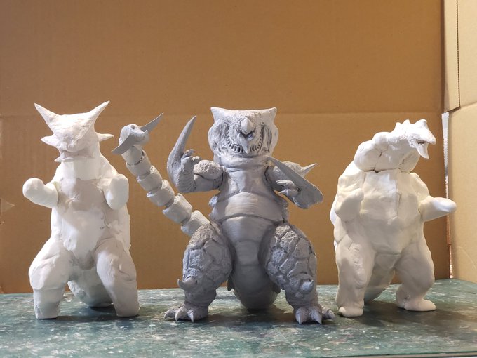 昨夜のベノラ&アノシラス3日目。各所分割して、まだプロポーション調整。ベノラは左顔盛ったけど調整まだ必須。アノシラスは背中の調整と顔の下盛り。細部の資料が足りないので本編の画面撮影が必要かも。なんかベノラってポケモンっぽくないですか? #ベノラ #アノシラス #電光超人グリッドマン twitter.com/i/web/status/1…