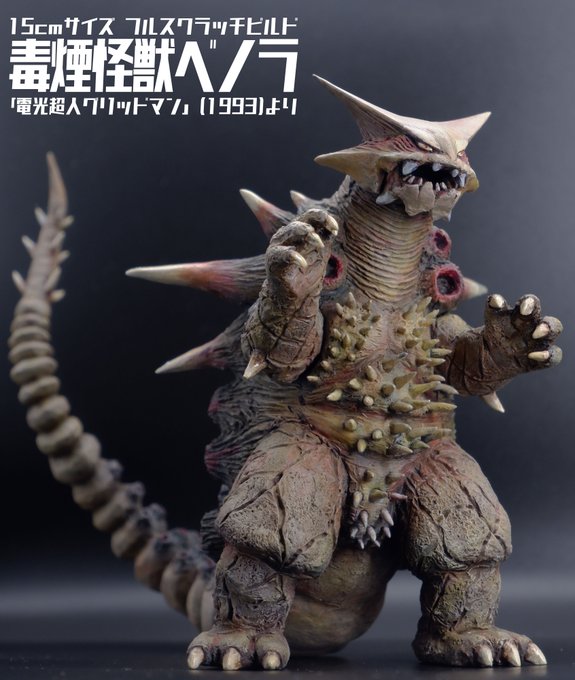【完成(1/3)】フルスクラッチ「毒煙怪獣ベノラ」完成!「#電光超人グリッドマン」25、26話登場。キンググリッドマンを誕生させたゴモラ風の強敵を15cmサイズ、ファンドにて初リアルフィギュア化!アノシラスと同時制作で18日(休止日除く)。 #SSSSグリッドマン 霧の怪獣。ぜひご覧ください! #ベノラ
