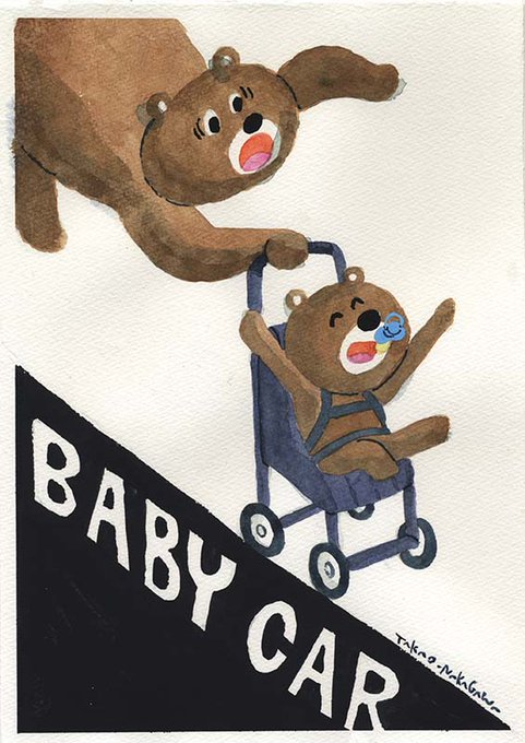 11月12日は「ベビーカーにやさしいまちづくりの日」 急な坂を下るベビーカーと喜ぶ赤ちゃんクマを描きました。 #ベビーカーにやさしいまちづくりの日 #今日は何の日 #ベビーカー note.com/ekakinonakagaw…