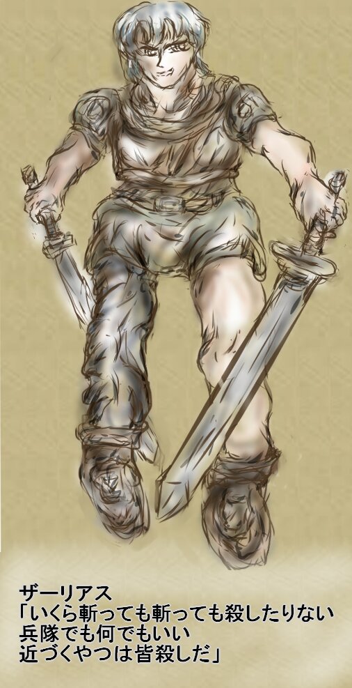 #絵描きさんと繋がりたい #絵柄が好みっていう人にフォローされたい #みんなで楽しむTwitter展覧会 #アトリエの系譜S #創作さんと繋がりたい #作品展示会 #ベルウィックサーガ #ベルサガ #ザーリアス 血に飢えた外道だけど 断末魔からして、自分の人生の末路を達観していたらしい。 モブのくせに…