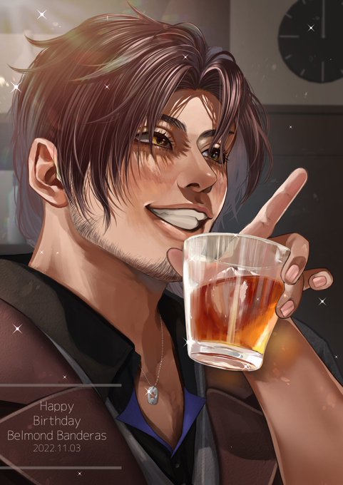 🥃 <「さあ飲もう」 にじさんじ🌈 ベルモンド・バンデラスさんFA ベルさんの優しいお声 お人柄大好きです いつもありがとうございます🌹 お誕生日おめでとうございます🎉 (細部お友達をちりばめました🤭) #ベルバン誕生日2022 #デラスのお品書き