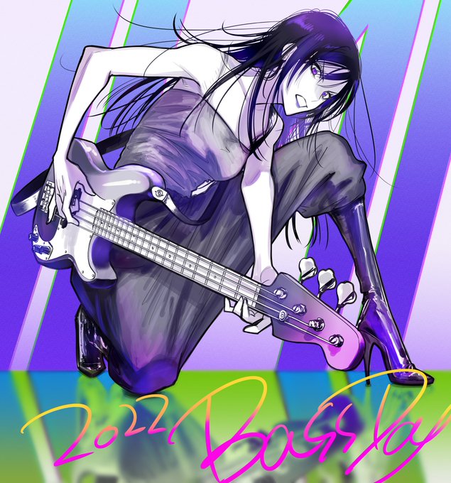 #ベースの日2022 3次元代表 「#GacharicSpin」 #FチョッパーKOGA さん 2次元代表 「#放課後ティータイム」 #秋山澪 たそ 澪たんは過去絵です。 #みんなで楽しむTwitter展覧会 #けいおん! #古賀美智子 #イラスト