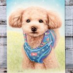 #色鉛筆画 #犬の似顔絵 #犬の絵オーダー #ペットの絵オーダー クルミちゃんももかちゃんの色鉛筆画です♡︎ʾʾ クルミちゃんはお空組さんです。 一枚の絵の中で、二人はずっと仲良く並んで、ご家族様を見つめていますねー。 #絵描きさんと繋がりたい #イラスト好きさんと繋がりたい #トイプードル