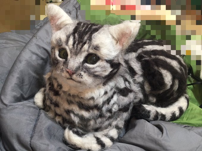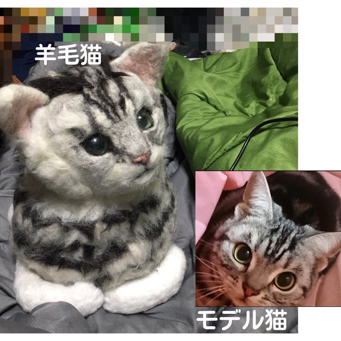ジュルリちゃんの飼い主様から早速動画の感想と写真を送って頂きました✨ 励みになります(〃ω〃)💦💖✨ #羊毛フェルトオーダー #ペットロス #虹の橋 #羊毛フェルト猫 #羊毛フェルトアメショー #アメショーシルバータビー #メモリアル人形