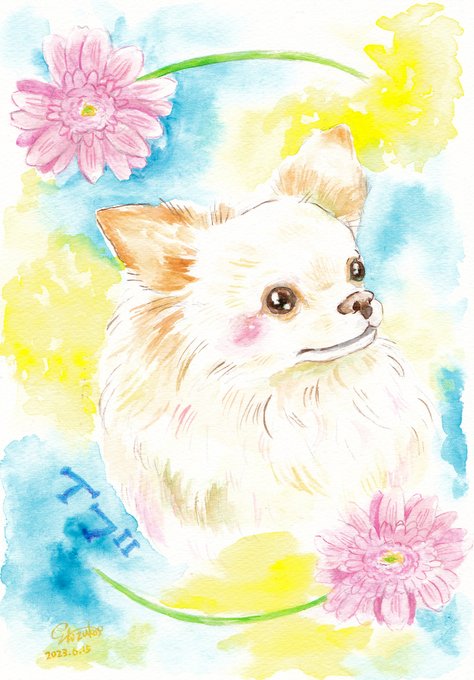 ミニチュアピンシャーとヨークシャーテリアの男の子。 愛され顔でにっこり。 ペット肖像画オーダー完成しました🐾 (掲載許可いただいています) #ペット肖像画オーダー #ペット似顔絵 #order #dog #愛犬 #ヨークシャーテリア #ミニチュアピンシャー