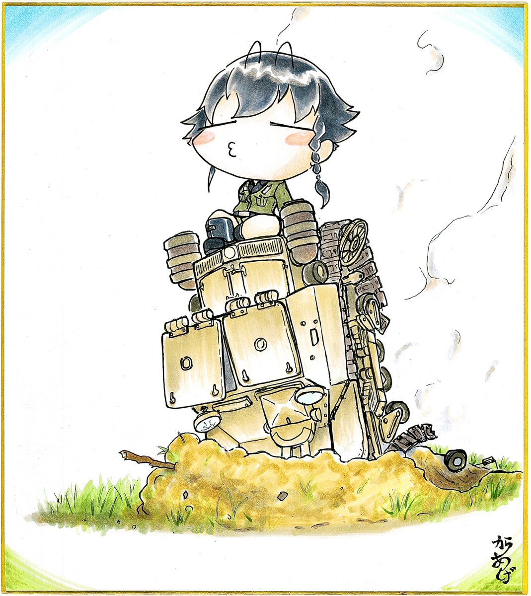 #ペパロニ生誕祭2022 #ペパロニ生誕祭 表情差分です。地味に目にグラデーションがかかってます。 ペパロニちゃんにこんなニコニコされたら、惚れてしまいそうです! シワは描き方分からないので端折ってます。