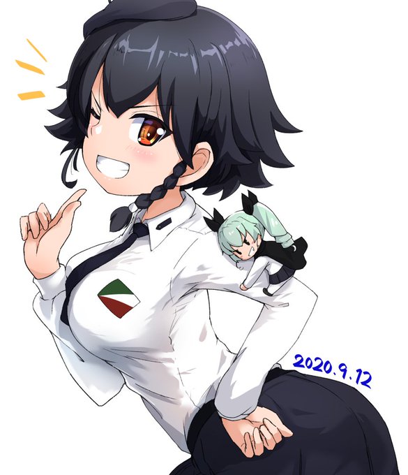 ペパロニ:…姐さん気持ちは嬉しいっスけど私には合わないんじゃ… アンチョビ:なーに言ってるんだ十分似合ってるぞ! カルパッチョ:ドレス似合ってますよね ペパロニ:マジっスかマジっスか #ペパロニ生誕祭 #ペパロニ生誕祭2022