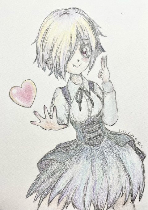 仕事で乗り遅れ、鉛筆ラフで失礼〜。 ペルちゃんおめー!そしてハッピーバレンタイン! #邪神ちゃんドロップキック #ペルセポネ2世生誕祭 #ペルセポネ2世生誕祭2023 #バレンタインイラスト #バレンタインデー #アナログイラスト