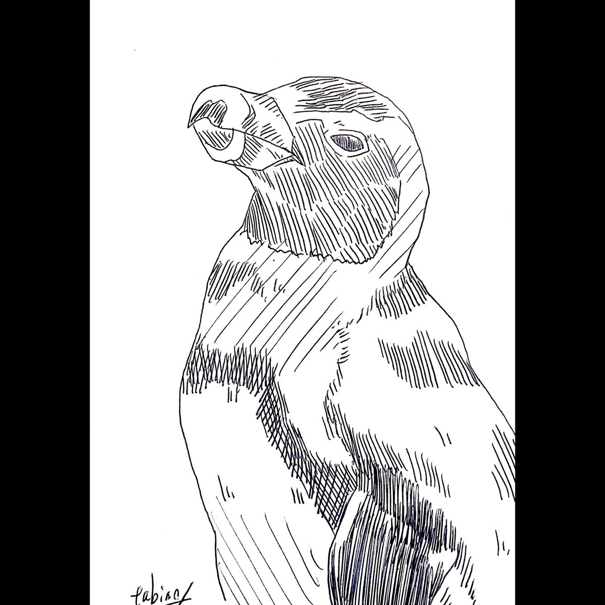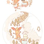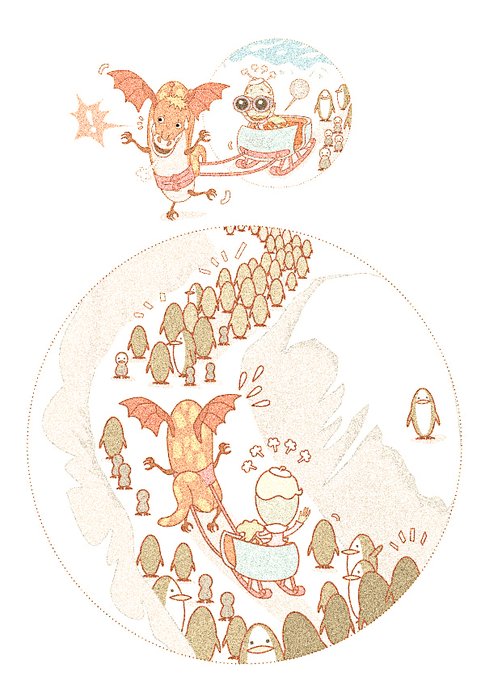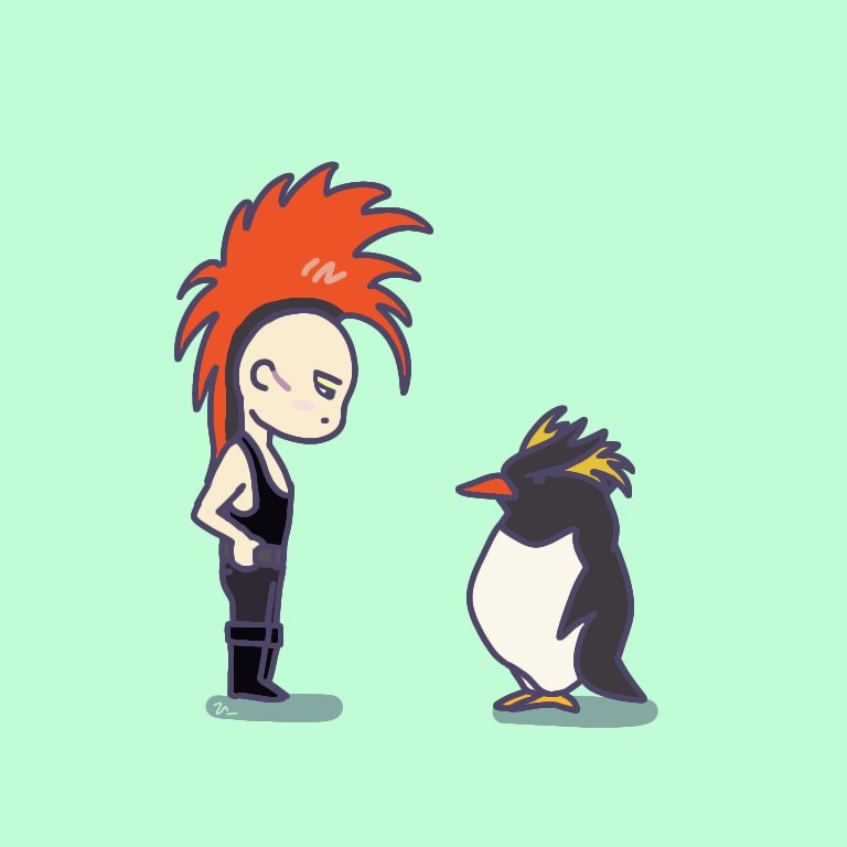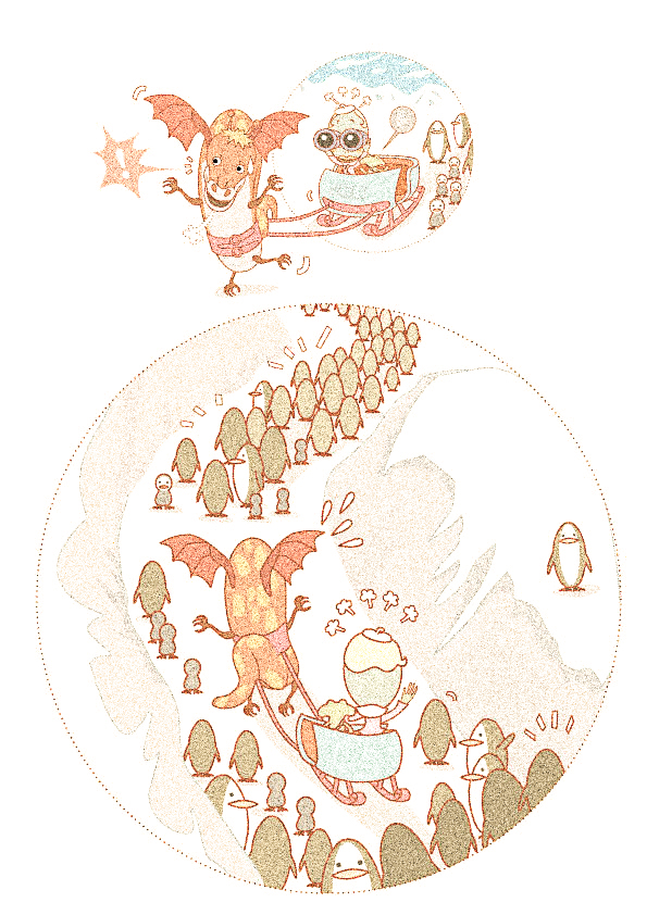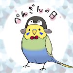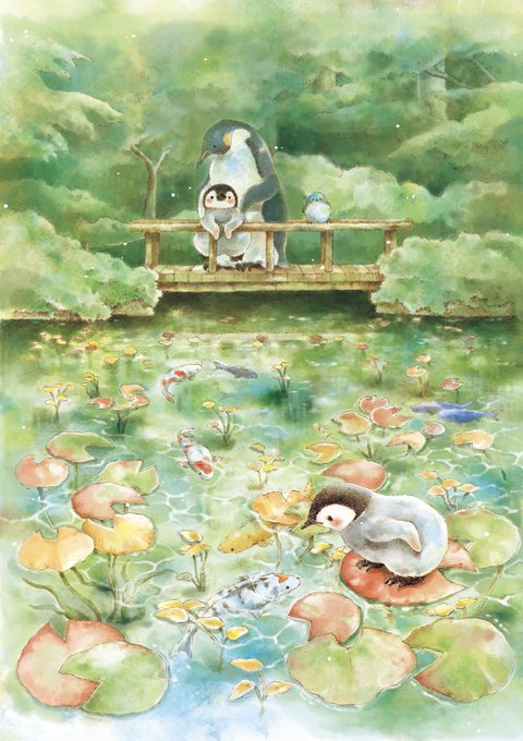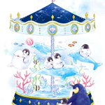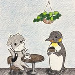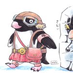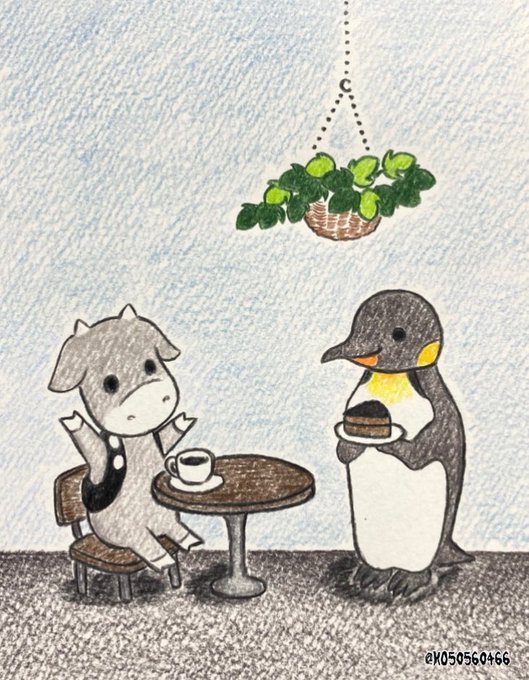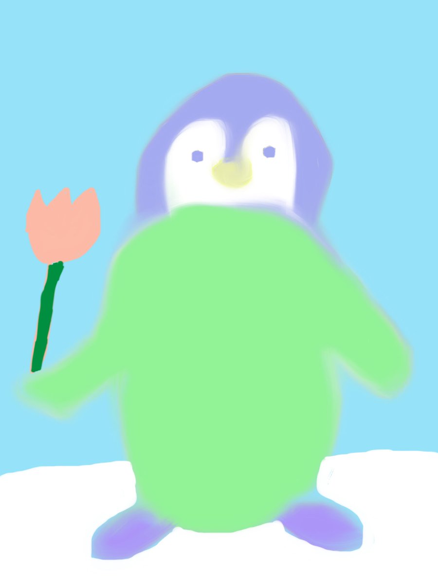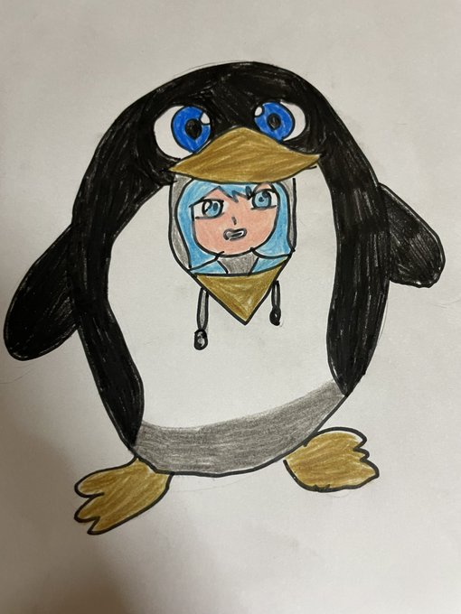 #一日一絵 #毎日絵一枚上げる #イラスト #色鉛筆画 #オリキャラ #ペンギンの日 #イラスト好きな人と繋がりたい #絵描きさんと繋がりたい ペンギンガール雪楽生 ペンギンの格好をした女であり屋台でかき氷 アイスを売っている よくペンギンと遊んだり氷を運んでいる