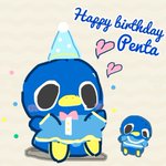 Happy birthday ペンタくん! 偶然運命の初期住民としてやってきたペンタくんに、ぬいぐるみをプレゼントしました♪大好き!!! #ペンタ #ペンタ誕生祭 #絵描きさんと繋がりたい #絵柄が好みって人にフォローされたい