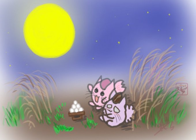 ねこ豆ちゃん描いた! お月見デート♡ (*ˊ艸ˋ)♬* #お月見 #ねこ豆 #オリキャラ #イラスト #イラスト好きさんとつながりたい #イラストレーターさんと繋がりたい #ペンタブ練習中 #アトリエの系譜plus